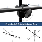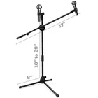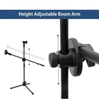 ✅ COLLAPSIBLE & LIGHTWEIGHT: Microphone Stand is the perfect blend of quality and portability. The premium painted steel will last through years of continuous wear and tear and is light enough ✅ TELESCOPIC & ADJUSTABLE: Thanks to its telescopic and rotatable design, you will be able to adjust this studio mic stand just the way you like it. The quick release clamp shifts the boom mic stand’s height from a compact 18 inches to 29 inches, and the arm can be lifted as high (or as low) a s you please ✅ 2 UNIVERSAL MIC CLIP HOLDERS: Two is better than one. That is why this tripod microphone boom stand comes with two clip holders! Just attach them to the microphone stand, insert your mic, and start recording. ✅ ENDLESS POSSIBILITIES: Recording studios? Check Stages? Sure. TV stations? Why not! This tripod boom mic stand is ideal for a wide variety of uses. The lightweight is to make it easy to shift the position on stage or move it from one location to another. Even more, the mic stand’s anti-slip rubber feet promote added stability and protect the ground surfaces from scratches . Perfect for recording studios, small intimate stages, and large performance halls alike. Mic clip included Ideal for live and studio settings Height Adjustable The control section can also be adjusted according to the height you are using, which is very suitable for sitting or standing. The stands are made ultra-light for easy transport. It is also built compactly to be both durable for long term use Angle Adjustable Tighten or loosen the fixed part to adjust the position of boom arm. Made with the new ASB plastic, which is sturdy and durable. Simply adjust the different orientations of the stand to suit your needs. Stable Tripod Made of the heavy metal base to keep the legs from collapsing. The base made with the new ABS is the core of the microphone stand. It acts as a balance and balance, allowing you to focus on your performance. Anti-slip rubber foot is to avoid leaving scratches on the ground. Microphone Holders Use one for your instrument and one for your voice to perform, enables a more professional musical experience