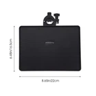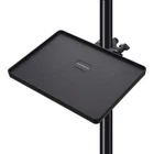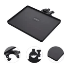 Tray Size: The tray is about 22.00X16.50X2.00cm/ 8.65X6.48X0.79in. Max load 3kg/ 6.6 pounds to support most equipment.This microphone stand tray is proved to be sturdy and durable.It can bear the weight of 3.1 kilograms at most.As a result, it can bear some heavier items kettle O- Style Buckle Lock: The Microphone Stand tray is designed with a O- Style Buckle Lock to help fix the tray on a microphone stand. You can adjust the clamp to a comfortable height, lock, and use; Very convenient and easy to operate, Raised lip around edges is designed to items from sliding off Sturdy Material: made of premium hard ABS material. not easy to cause any damage or fracture, in this way, it can well the tray Great Compatibility: Lightweight durable Mic stand utility tray fit for microphone stand tray, Microphone Stand/ Music Sheet Stand/ Speaker Stand, Sound Card Tray for Selfie Light Stand/ Tripod Widely Use: The Music Tray can be fixed on the microphone stand or music stand, which turns out to be convenient for you to put a variety of gadgets on it, such as mobile , guitar accessories, microphone accessories, music sheet, glasses, paper, pen etc