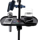 🌿【Compatible With】 The opening diameter can be adjusted better and firmly grasped the pole when fixed, fits tubing up to 0.5-1.4 inch(1.27-3.56 cm). This Phone Holder Microphone Stand Tray is suitable for most microphone stand/music sheet stand/speaker stand/selfie light stand/phone tripod . Notice: Please check if this mic stand tray is workable for your device before purchasing. 🌿【ABS Material for Durable】 The heavy-duty microphone stand tray is made of premium durable ABS material, which max loads 3kg/6.6 pounds to support most equipment. The mic stand holder tray measure size is 7.8in x 11.7 in (20cm x 30cm), width enough to meet your daily needs. 🌿【Multifunctional Tray】 This tray holder is additionally designed with a 1.6"/4cm diameter microphone holder, drink holder, headphopne holder and adjustable phone holder for live stream, live show or video chat, and it can fit most cell phones and IPAD (2.6"-7.3”) inches in width. 🌿【Adjustable Design】 After the music stand tray is installed, you can switch the height you want at will by adjusting the screw tightness. 🌿【Wide Application】 The universal microphone stand tray is perfect for stages, offices, lecture halls, recording studios, offices, webinars, meeting rooms or your own home. Great for holding small accessories like capos, harmonics, cell phonees, picks, phones, small percussion. The microphone stand tray with a cup holder is a versatile accessory designed to enhance your recording or performance setup. This convenient tray easily attaches to your microphone stand, providing a stable platform for your water cup while you focus on your work. Crafted with durability in mind, the tray is a practical solution for keeping your hydration within reach during long sessions or performances. Its user-friendly design ensures quick and secure attachment to most microphone stands, offering a seamless and efficient solution for musicians, podcasters, and performers seeking a functional and organized workspace.