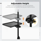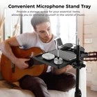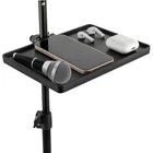 【Universal Compatibility】Designed to fit around 1.18-inch diameter poles, the microphone stand tray is a versatile addition that perfectly complements microphone stands, music sheet stands, speaker mounts, selfie light holders, and even tripods. Elevate your performance, recording, or content creation setup effortlessly with our tray. 【Appropriate Size & Strong Load Capacity】The tray measures about 8.7 x 6.5 inches, providing ample space for your essentials such as cellphones, glasses, notebooks, and pens. In addition, Its maximum load capacity of 3kg ensures stable support for various devices commonly used during performances or work sessions. 【Firm O-ring Clamp】Our microphone stand shelf has an o-ring clamp that provides excellent stability. Its adjustable opening ensures a steadfast grip, even when bearing heavier loads. The clamping area has a rotating knob for smooth vertical movement along the stand, allowing you to adjust the tray to the optimal height during your performance. 【Durable Material & Smooth Surface】 Made of thick ABS plastic, our clamp-on rack tray is strong, durable, and resistant to cracking or breaking. Withstanding impact and wear, it guarantees longevity in the most demanding creative journeys. The smooth black surface not only complements various setups seamlessly but also prevents scratches on your hands or items. 【Wide Application】Whether you're performing on stage, presenting in an office, speaking in an auditorium, recording in a studio, or attending webinars, this microphone stand tray is an indispensable accessory. It is suitable for a wide range of settings, catering to the needs of musicians, speakers, presenters, and professionals in different fields.