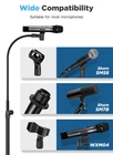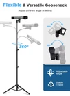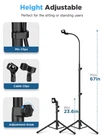 Tips: The higher the angle of the tripod, the stronger the grip. Mic stands are more stable when the boom arm is oriented in line with the feet. Height Adjustable: This mic stand is made of metal tubing with tripod stand base, which makes it extremely sturdy and super stable. The height of the microphone stand is adjustable, and the height range is from 23.6 to 67 inches. Flexible Gooseneck: The gooseneck is 360° adjustable, allowing you to set the desired angle for your microphone. And it makes this mic stand more flexible and practical. Perfect microphone stand for kids and adults. With 2 Mic Clips & 2 Cable Clips: The mic stand comes with 2 different styles of microphone clip holders, it can hold most of the microphones on the market. With 2 clip-on cable holders to keep the cable neatly and orderly. Detachable & Portable Design: The detachable design makes the stand space-saving and more portable. It is easy to carry and install which provides great convenience for various types of activities like the stage, studio, concerts, outdoor performances, and more. Packing List: 1 x Mic Stand (4 Sections), 2 x Mic Clips, 2 x Cable Clips, 1 x Portable Storage Bag, 1 x User Manual.