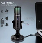 USB Microphone RGB Computer Condenser Gaming Mic for PC/Laptop/Phone/PS4/5, Headphone Output, Easy Tap to Mute, USB Black