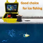 Yellow Portable Underwater Fishing Camera Video Fish Finder DVR Recording with Drop Protection Case 9" HD LCD Monitor 1200TVL Camera 24pcs Infrared and Cool LED Lights for Ice Lake Boat Fishing About this item 【9” HD Color LCD Monitor】This underwater fishing camera has a 9 inch TFT color monitor with 1080*720 display resolution and removable sun-visor ideal for bright environments. Identify fish easier with sharper image quality and superb dynamic monitor. 【Upgraded 1200TVL Camera & DVR Recording Function】Compared with the old 1000TVL camera, this underwater fishing camera resolution makes the images more clear and the color of it more vivid. It also has video function, can see the clear underwater picture at any time, record the wonderful moment of fishing. 【24pcs Infrared Lights】12pcs IR Lights and 12pcs white lights each, switch available fishes will be seen more clearly in the dark environment. Please note: the image will turn to black and white if you open the infrared light. 【8-10 Hours Working Time】The underwater video camera fish finding system features a powerful 12V 4500mAh battery. The continuous using time of the lithium battery can up to 10 hours when the battery is full charged. 【Widely Used Occasions】 This fish finder is best choice for fishing enthusiasts, ideal for sea fishing, swimming, ice fishing, diving, lake fishing, snorkeling, inflatable kayak fishing, boat fishing, Underwater Ice Fishing, monitoring aquaculture, underwater exploration and other underwater adventures. If you have any questions on this product, contact us here through messages and leave a positive review if you are satisfied with the product! KINDLY contact us directly before initiating any return request. Our top priority is your satisfaction, and we can likely resolve your issue without the hassle of the return process. Thank you!