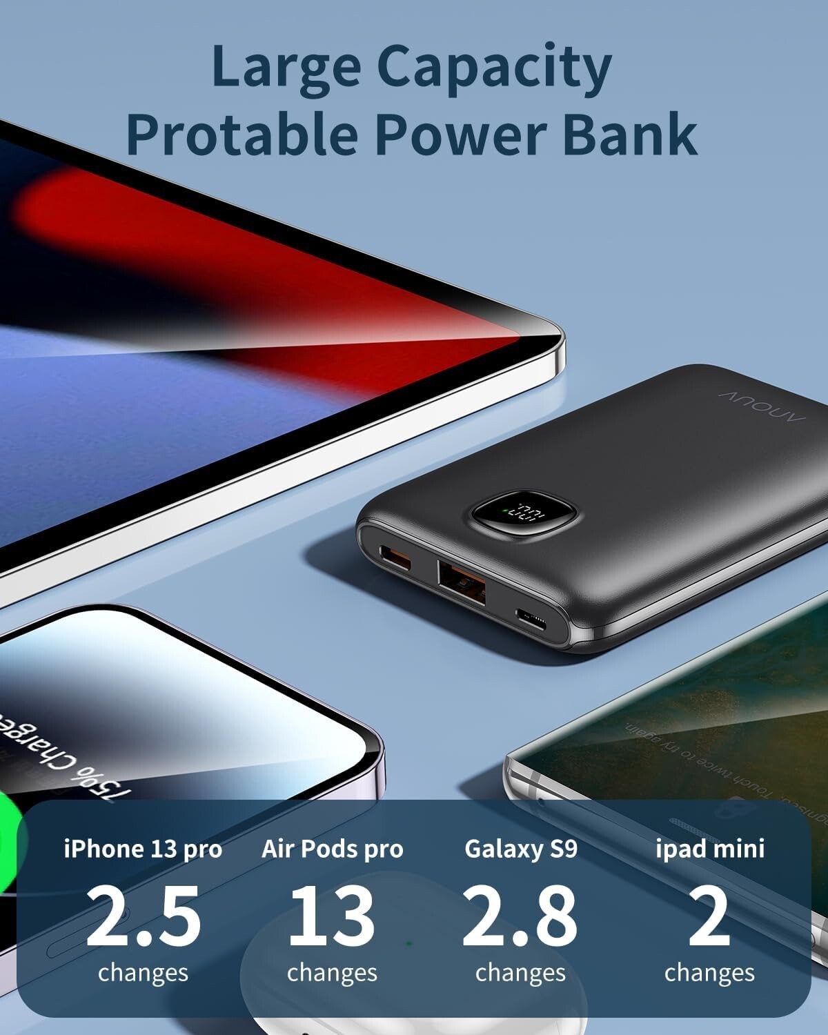 Portable Charger - Mini Power Bank 10000mAh, PD Fast Charging Small External Battery Pack with PD & QC , USB-C Ultra Slim Portable Charger Compatible with i,etc 🔋Experience Ultimate Portability - The Small and Lightweight 10,000mAh Power Bank features an ultra-slim and lightweight design, measuring only inches by inches by inches. Unlike bulky battery packs, this mini power bank is specially designed for light travel and daily use. It easily fits in your pocket, making it the perfect companion for your travels and daily activities. 🔋 Fast Charging - With advanced PD and QC fast charging capabilities, this portable charger offers lightning-fast recharging and charging speeds. It features USB-A output, Type-C input/output, and can deliver a maximum power of Other input ports offer 18W power, allowing you to save up to 70% of the charging and recharging time! 🔋Universal Compatibility - Our portable charger is compatible with almost all smart devices, including smarts, tablets and more. It offers a level of convenience and integration that is unmatched. Whether you're an Android or iOS user, our product is SATISFACTION GUARANTEEd to work flawlessly with your chosen device. 🔋Advanced Safety Features - The power bank is equipped with a smart protection chip that ensures the safety of your devices. Built-in safeguards protect against excessive current, overheating, and overcharging. The multi-protection safety system provides complete protection for you and your devices, giving you peace of mind. 🔋Excellent Customer Service - Your purchase includes 1x 10000mAh power bank, 1x Type-C fast charging cable, and 1x manual. If you encounter any issues, feel free to contact me. We are committed to resolving your problems within 24 hours and providing you with a satisfaction or service. Experience excellent service and power up your devices with confidence!