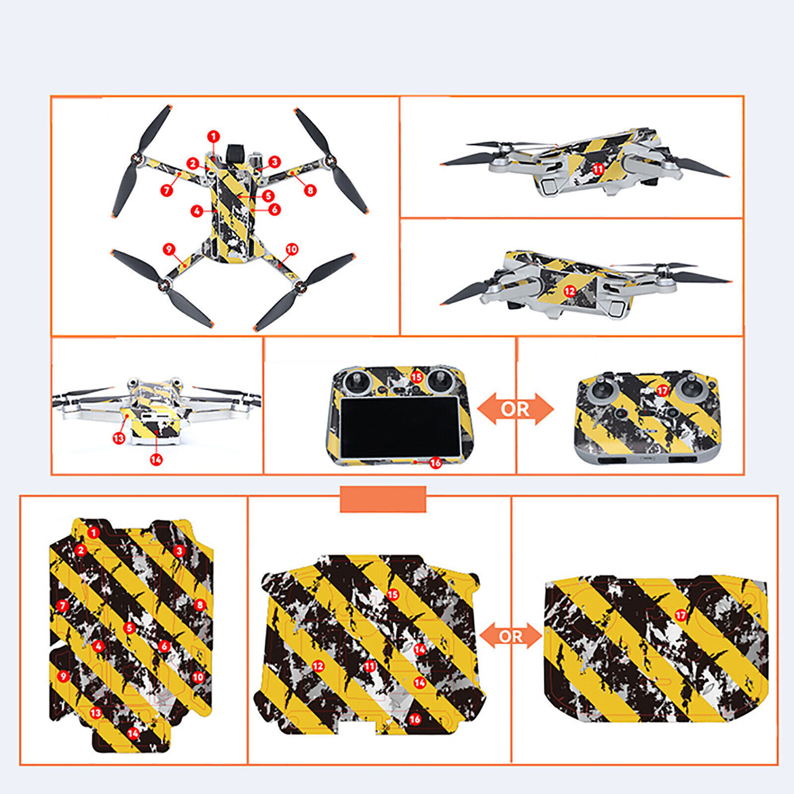 This drone skin wrap is a game-changer! The high-quality PVC material fits my Mini 3 Pro perfectly, adding awesome protection and style. Easy to apply without bubbles, it makes my drone stand out while keeping it safe from scratches. The adhesive is strong but leaves no residue if removed. For under $10, it's an absolute steal - way better than plain black! The precise cutouts don't interfere with any functions, and the vibrant colors look fantastic in flight. A must-have accessory that makes my drone look brand new!