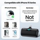 【Portable Charger with the Built-In USB-C Connector】this power bank is widely compatible with iPhone 16/16 Plus/16 Pro/16 Pro Max,15/15 Plus/15 Pro/15 Pro Max, iPad Air (4th/5th Gen), iPad Pro 11-in. (1st/2nd/3rd/4th Gen), iPad Pro 12.9-in. (3rd/4th/5th/6th Gen), iPad mini(6th generation), iPad(10th Gen), AirPods Pro(2nd Gen), Samsung Galaxy S22/S23,Google Pixel, LG,Moto and other Android devices with USB C charging port. 【Ultra-Compact Portable Charger】 this mini portable charger size is only 3.2x1.96x1 inch, Super small and lightweight. You can put in your pocket, clutch bag or purse easily. 【PD Fast Recharging and Smart LCD Display】This mini iPhone15 battery pack support PD quick speed charging,fully recharge this mini portable charger about 2-3 hours. Smart LCD display clearly show the remaining battery left. 【5000mAh Emergency Battery Backup Charger 】This power bank is 5000mAh Capacity,normally 0.9 charge for your iPhone 15, Which is very suitable as a backup power supply for daily use,keeping your devices powered up wherever you go. 【Tips for Charging through Phone Case】This portable charger is compatible with phone case thickness less than 4MM. If your phone case thickness is beyond 4MM, the USB-C port can not plug into charging slot, you need to remove your phone case.