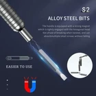 【PREMIUM STEEL】The precision screwdriver sets are made of S2 steel with high hardness(60HRC), sturdy and durable. Aluminum alloy handle constructed with anodic oxidation process and special Anti-slip treatment for extra comfort. All of the size bits undergo the rigorous quality control testing to make sure stable and not easily stripped, guarantee for long time use. 【ERGONOMIC HANDLE GRIP】Our small screwdrivers set handle is ergonomic and no-skid design handle. It is comfortable to hold for preventing slipping. Aluminum alloy design makes the bits smooth to touch for superior comfort and 360 degree swivel cap allows for rapid twisting. 【MAGNETIC BITS 】The precision screwdrivers can easily hold screws on the magnetic bits and prevent losing small screws for optimal handling and fastener control. 【WIDELY USED】 Homelae mini screwdrivers set can be used for repairing smartphone, Iphone, Macbook, Ipad, Electronics, Watches, Camera, laptops, glasses, Circuit boards, Toys, PC, Game consoles and most handheld devices. 【GIFT BOX】 This screwdriver tool come with a mini aluminum alloy storage case to keep your tools well. So the kit is also a perfect gift for your family and friendly.