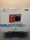 The Minolta MN12Z digital camera in red is an open box item being sold untested. It includes a charger but does not come with a battery. This digital SLR camera is ideal for photography enthusiasts looking for a compact and reliable option. Note on condition: Visible tearing of SCREEN PROTECTOR on back Untested
