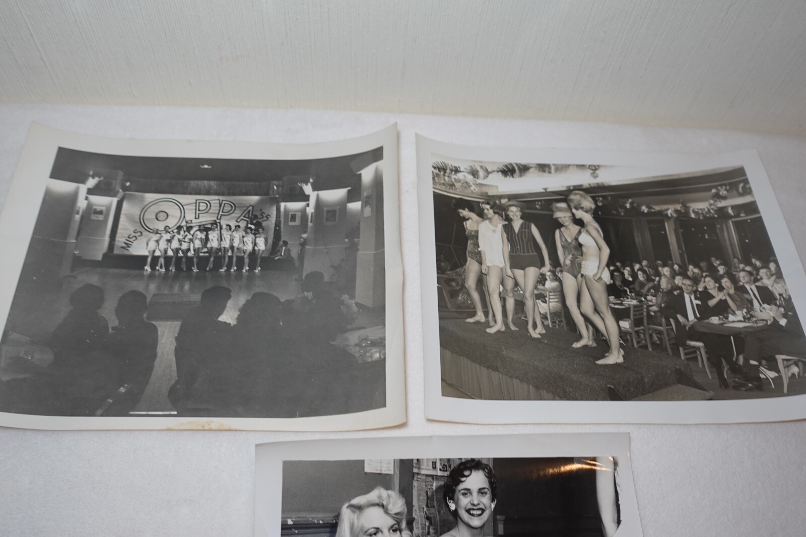 Miss Oppa 1955 Oregon Beauty Pageant Women Vintage Photo Lot - 3 Pictures It is believed that these were the Miss Oregon Press Photographers' Association Pageant. Photos measure approximately 8 1/4" x 10". Items have heavy bowing, surface scratches, dings to the edges and corners, possible edge tearing, creasing, discoloration and marks. There is writing in ink on the back of each photo. Please see photos for more information on condition and ask any questions you may have.