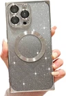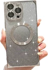 Misscase for iPhone 15 Pro Max Magnetic Case Compatible with MagSafe|Full Protection Square Glitter Case with Camera Lens Protector Anti-Scratch Dust-Proof Net Case Cover for iPhone 15 Pro Max Silver