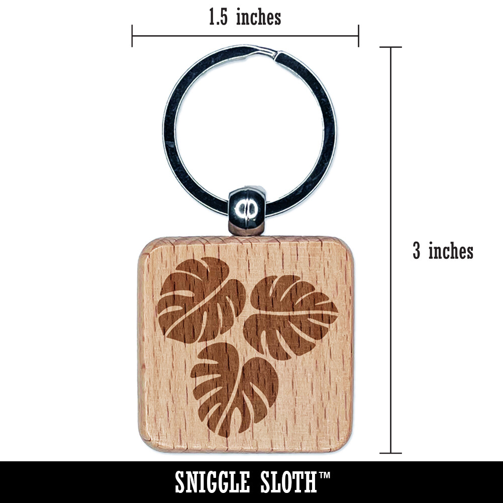 Monstera Leaf Trio Engraved Wooden Square Keychain Charm
