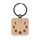 Moon Phases Circle Engraved Wood Square Keychain Tag Charm
