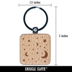 Moon and Stars Engraved Wood Square Keychain Tag Charm