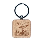 Moose Wading in Water Engraved Wood Square Keychain Tag Charm