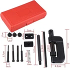 Product Description Description: This tool kit is designed for use on most cars and Light trucks that have press-fit type ball joints, without the need to remove the control arm from the vehicle. Product Description: - Designed to rivet chain links to form an endless chain and is versatile enough to be used on cam chain to drive chains or as a chain breaker by pushing the pin out. - This tool will break and rivet 420-630 rear drive chains. - For breaking and joining most drive chains from 35-630. - For chain #520 and up, it is recommended to grind the rivet head. - Recommended for light to medium duty use. - Essential tool, no motorcycle mechanic should be without it. - Brakes and rivets/stakes all over head cam chains on all model Japanese and European OHV Cam Chains. - Comes in handy storage case. Product Specification: Type: Motorcycle Chain Breaker Tools Suitable for all motorcycle / cam chains etc... Includes the necessary tools to split and rivet 428, 430, 520, 525 and 530 chains For Breaking and Joining most Drive Chain from 35 to 630 Material: Chrome vanadium steel Pins: 2.2mm, 2.9mm, 3.8mm Pin guide: 2.2 upper/2.2mm lower riveter pin Anvil: 3mm, 6mm Box color: red Box size: 220 * 120 * 50mm / 8.7 * 4.7 * 2.0in Package size: 220 * 120 * 50mm / 8.7 * 4.7 * 2.0in Package weight: 768g / 1.7lb Package Include: 1 x Handle 1 x Lever 1 x Spring 2 x Press Plate 3 x Forcing Pin 1 x Riveter Pin 1 x Large Anvil 1 x Small Anvil 1 x Hollow Anvil 1 x Alignment Bolt 1 x Carry Case 1 x User Manual Payment Shipping Returns We accept PayPal only. We will ship out the item after receiving cleared payment. We send package within 1 working days after receive payment ,normally take 3-8 working days arrive u ! We Send package randomly from NJ or CA ! Accept return within 30days ! Payment We accept PayPal only. We will ship out the item after receiving cleared payment. Shipping We send package within 1 working days after receive payment ,normally take 3-8 working days arrive u ! We Send package randomly from NJ or CA ! Returns Accept return within 30days ! powered by