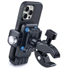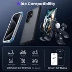 【User Friendly】Half Closed simplicity design, Not interfere with the mobile 4 corners or cameras using like other mounts.Wide Compatibility with All Phones in Thick cases,this motorcyle cellphone mount fits all phones with cases up to 0.79 inches (21mm) thick, making it compatible with 99% of smartphones in shockproof cases. 【Elegant & Stable Design】 Crafted with metal for a sleek, premium look, this bike phone holder seamlessly complements your high-end motorcycle or bike. The half-enclosure, slim, and stylish design ensures your camera remains unobstructed, 360° rotating ball allow you to capture stunning photos and videos during every ride. 【Superior Stability &10X Protection】 Engineered with Nylon PA66 and 30% alloy fiber, equipped with vibration dampening and 120mph anti-shake,features 10X Protection. The non-contact design for the phone camera prevents squeezing and scratching while cycling. The bike phone holder clamp's rubber padding secures to the handlebar and protects from scratches. 【Universal Fit for 99% Handlebars】 The upgraded bicycle phone mount handlebar clip is incredibly easy to install, fitting 99% of ATVs, bicycles, motorcycles, electric scooters, strollers, golf carts, and more with diameters from 0.5'' to 1.65'' (12mm to 42mm). Backed by a 365-day assurance for peace of mind. 【1s Quick Installation and Release】 With a simple rotation of the knob, you can quickly expand the motorcycle phone holder clamp width, place your phone, and secure it with a twist. Once adjusted for your phone, enjoy one-handed installation and release in just 1 second.