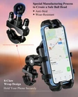 Sturdy and Safe: The main body of this motorcycle phone holder is made of high-strength composite materials, providing durability and reliability in the most demanding environments. Built-in high-quality industrial springs and a special eight-claw wrapping phone design ensure that your phone is securely fixed on the phone holder even when driving on bumpy roads Sturdy Mounting Base: Using metal U-shaped handlebar mounting base. Fit on 0.5''(12mm)-1.26''(32mm) handlebars for motorcycle, bike, bicycle, E-bike, stroller, mountain bike, dirt bike, trek bike, road bike, golf cart, electric scooter, ATV, etc. Anti-Shock, Protect Mobile Phone Camera: Equipped with vibration dampener, Maximizes absorption of vibrations caused by riding. The motorcycle phone mount also built-in with soft silicone that keep your phone from scratches and vibration. Phone mount & phone camera features a non-contact designed to keep the phone camera from being squeezed and scratched while riding One-Handed Operation: Put in or take out your phone with just one hand in one second, very convenient. 720 degree free rotation design, can be easy to adjust the mobile phone to horizontal or vertical screen. Enjoy a free and easy riding Adjustable Design, Wide Compatibility: Adjustable width design can accommodate mobile phones of more sizes. This Bike Phone Mount Holds Phones (Case Included) Dimensions: Maximum Width: 88mm(3.46''), Maximum Length: 178mm(7''), Maximum Thickness: 16mm(0.629''). Compatible with cellphone screen diagonal size: 5.4-7.2 inches