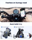 1 Click, Auto Lock- 2022 latest motorcycle phone mount features with a upgraded auto lock button. 4 arms will auto lock your phone with a click, and unlock by pressing both side. Real one hand operation. Thanks to the solid structured inner mechanism, the lock button won't get stuck (tested to stand with 3000+ times press) Hold Your Phone Like A Vise- Both the clamp and mount are cushioned for protection of the phone and handlebar. Has a high-speed lock switch, you can double lock your phone when you ride at bumpy road. No worry your phone will vibrate loose when you hit 100mps Solid Reinforced Ball-Joint- The bicycle phone mount is equipped with a upgraded robust ball part, which is made of military-grade A+ material with high tenacity, effectively solve the problem of snapping off. Good choice for long-term use 360° Adjustable- Thanks to the universal ball design, the bike cell phone holder is all-round adjustable, you can pivot the phone enough to any angle. A silicone pad is also filled into the thread, which can secure the angle from loosing up while you're riding Wide Compatibility- The bike phone holder is compatible with handlebar from 0.7” to 1.34”, you can use it on your ATV, scooter, stroller, peloton, etc. Cellphone from 4.7” to 7”, thickness (with case)≤0.71”, support iPhone,Samsung, LG, Google Pixel,Motorola,One Plus, etc. (Note: Iphone 13 pro max with otterbox case is not compatible)