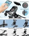 Bike phone holder for motorcycle & bike handlebars 1. With One-touch lock and quick release switch. 2. With aluminum alloy handlebar mounting base. 3. With stainless steel telescopic arms. 4. Built-in shockproof silicone. 5. 360 rotation design. 6. Can be mounting on handlebar and rear-view mirror frame. 7. Fit for 4''-7'' cellphones. 8. Compatible for handlebars 22mm to 32mm in diameter. One-handed operation: 1.Put the phone in motorcycle phone holder with just one hand, automatic lock your phone in one second when the central red button pressed. 2.You can pick up the phone as soon as you press the two telescopic module on motorcycle phone mount at the same time. Adopts ingenious design: The bike phone mount panel will not squeeze the phone camera, which can prevent the camera from being scratched. Package includes: 1* Motorcycle cell phone mount. 2* Rubber ring(diameter 22mm, 25.4mm). 1* Rear-view mirror mounting holder. 1* Allen wrench. 1* 80mm tape. 1* Using manual. One-handed Operation: The bike - motorcycle phone mount adopts one second automatically lock design. Put in or take out your phone with just one hand in one second, very convenient. 360 degree free rotation design, can be easy to adjust the mobile phone to horizontal or vertical screen. Enjoy a free and easy riding Sturdy and Safe: A special shape design of this bike phone mount can be wrapping four corners of your cell phone tightly. Adopts stainless steel telescopic arms and aluminum alloy handlebar mounting base, super sturdy! The bike phone holder holds your phone perfectly even riding on a bumpy road Shockproof Protection: The bicycle phone mount also built-in with soft silicone that keep your phone from scratches and vibration. Phone bike mount & phone camera features a non-contact designed to keep the phone camera from being squeezed and scratched while riding Easy Installation: This motorcycle cell phone mount can be installed on the handlebar or rear-view mirror frame. Come with two rubber ring inserts to provide a snug fit and protection of the mounting surface. You can add or remove the rubber ring inserts according to the diameter of handlebar. Equipped with a rear-view mirror mounting base, which is convenient for you to install the motorcycle phone holder on the rear-view mirror frame Compatible with Phone & Handlebar Sizes: This Motorcycle Phone Mount Holds Phones (Case Included) Dimensions: Length 5.12'' (130mm) - 6.89'' (175mm), Width 3.385'' (86mm) Max, Thickness 0.629'' (16mm ) Max. Compatible Handlebar Diameter: 0.5''(12mm) / 0.87''(22mm) / 1.0''(25.4mm) / 1.125''(28.6mm) / 1.26''(32mm). Suitable for installation on bike, bicycle, motorcycle, stroller, mountain bike, dirt bike, trek bike, road bike, golf cart, electric scooter, ATV, etc.