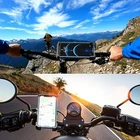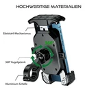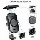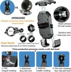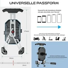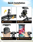 Motorcycle Phone Mount Auto Lock 360° Military Anti-Shake Bike Phone Holder NEW [One-handed operation] The bike motorcycle phone holder features one-touch automatic locking and quick release design. Insert or remove your phone with just one hand in a second, very convenient. 360-degree free rotation design, the mobile phone can easily adjust to horizontal or vertical screen. Enjoy a free and easy ride. [Robust and Safe] A special shape design of this bicycle phone holder can tightly wrap four corners of your phone. Adopts stainless steel telescopic arms and aluminum alloy handlebar bracket, super robust! The phone holder for the bike holds your phone perfectly, even if you are riding on a bumpy road. [Shockproof Protection] The bicycle phone holder is also equipped with soft silicone, which protects your phone from scratches and vibrations. The mobile phone bike mount and mobile phone camera have a non-contact function that prevents the mobile phone camera from being squeezed and scratched while driving. [Easy Installation] This motorcycle phone mount can be installed on the handlebar or rear-view mirror frame. Comes with two rubber ring inserts to ensure a firm fit and protection of the mounting surface. You can add or remove the rubber ring inserts according to the diameter of the handlebar. Equipped with a rear-view mirror mounting base that allows you to conveniently attach the motorcycle phone holder to the rear-view mirror frame. [Wide Compatibility] This motorcycle phone holder is compatible with 4-inch to 7-inch phones. Maximum compatible thickness: The total thickness of the mobile phone and mobile phone case should not exceed 16 mm. For handlebars with 0,5"/0,87"/1"/1,26" diameter. Suitable for installation on bicycle, motorcycle, electric scooter, dirt bike, ATV etc. Can be mounted on the handlebar or motorcycle mirror. secure grip in every situation ️Innovative locking mechanism ️360° ball joint