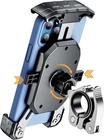 Sturdy and Safe: Stainless steel clamp arms; Aluminum alloy handlebar phone holder base; Multiple shockproof silicone is arranged on the phone Clip; 3-claws tightly lock and 4-corners entirely wrapping secure design; It ensures the safety and stability of your device when cycling even on a bumpy road. A Good Partner for Outdoor Cycling: The 360-degree rotating design allows you to adjust the phone to the most comfortable angle during riding. The handlebar mount adopts a convenient design, and it is easy to install or remove bracket on the handlebar without tools. Better bike accessories for adult bikes. Better Protect The Phone Camera: The center of the holder adopts a non-planar slightly raised design, and is arranged with a shock-proof silicone ring, so that the phone camera will not squeeze on the holder, avoiding scratches and shocks when riding on bumpy roads. Size Details: Fit phone size: 4-7 inches; Handlebar size: diameter 22mm/25.4mm/32mm. Package Includes: 1*One touch cell phone holder; 2*Sleeve( diameter 22mm, diameter 25.4mm ); 1*Product install and using manual; 1*80mm tape One-handed Operation: This motorcycle phone mount equipped with a quick release mounting base, very convenient to installation on bike, motorcycle handlebar, Adopts one-click automatically lock and quick release design, Put in or take out your phone quickly by one hand in one second, make you enjoy a full free and easy riding Shockproof Protection: The bike phone mount also built-in with silicone pads that keep your phone from scratches and vibration, Adopts non-contact design of phone bike holder and phone camera, Keep the camera from being squeezed and scratched while riding Sturdy and Safe: A special shape design of this motorcycle phone holder can be wrapping four corners of your cell phone tightly, Adopts stainless steel telescopic arms and aluminum alloy handlebar mounting base, super sturdy, The bike cell phone holder holds your phone perfectly even riding on a bumpy road Easy Installation: This bike phone holder equipped upgraded quickly handlebar mounting base for easier and quicker installation or removal, The extra 2 rubber ring rubber inserts and you can can add or remove the rubber rings inserts according to the diameter of handlebar, the rubber ring provide a snug fit, protection of the mounting surface and increase the grasping force, so the bike phone holder won’t flip down or wiggle around, Securely fastened to your bike handlebars Wide Compatibility: The motorcycle phone mount fit for bike, motorcycle handlebar compatible with 4 - 7'' phone, Fit for mobile phone thickness less than 16 mm, The bike phone holder handlebar mounting base fit for handlebars 0.87''(22 mm), 1.0''(25.4 mm), 1.26'' (32 mm) in diameter, Handlebar diameter: ⌀ 0.5 - 1.26" (12-32 mm), Suitable for installation on various types of bicycles, motorcycles, stroller, shopping cart, electric scooter, indoor treadmill, road bike