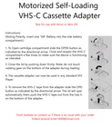 VHS-C to VHS Videocassette Adapter. Enjoy your home movies instantly. This adapter lets you watch home movies recorded on a VHS-C or Super VHS-C videocassettes using a standard VHS VCR. So, you'll no longer have to go through the hassle of connecting cables from your camcorder to your TV whenever you want to relive the special moments in your life. The adapter is motorized for easy entry and removal of tapes. It's made with a blend of metal and plastic, providing a quality construction that's built to last. Does not work with or play: MiniDV, Hi8, Digital 8, and 8mm tapes. Requires 1 AA Battery (not included) Untitled 5 Motorized VHS-C to VHS Cassette Adapter for SVHS Camcorders JVC Panasonic RCA 802654429653 B01MXQ17IF VW-GTE-7E LIKE NEW Like New Authorized Dealer. Packaging damaged or not included. Item may show minimal signs of wear that do not impact product function. https://d3d71ba2asa5oz.cloudfront.net/22001023/images/9062%20pro%202024.jpg.png Motorized VHS-C to VHS Cassette Adapter for SVHS Camcorders JVC Panasonic RCA VHS-C to VHS Videocassette Adapter. Enjoy your home movies instantly. This adapter lets you watch home movies recorded on a VHS-C or Super VHS-C videocassettes using a standard VHS VCR. So, you'll no longer have to go through the hassle of connecting cables from your camcorder to your TV whenever you want to relive the special moments in your life. The adapter is motorized for easy entry and removal of tapes. It's made with a blend of metal and plastic, providing a quality construction that's built to last. Does not work with or play: MiniDV, Hi8, Digital 8, and 8mm tapes. Requires 1 AA Battery (not included) Motorized Cassette Adapter Easy Conversion From VHS-C To Standard VHS Format (Motorized So Tape Loading And Unloading Is Fast And Easy) Note: Required One AA Battery Are Not Included VHS-C adapter : This adapter allows you to play your camcorder’s compact VHS-C tape in any VCR Easy Instructions For Use Slide open cover in the direction indicated by the arrow. Place your VHS-C tape into the adapter. Slide cover shut. Place VHS-C adapter in your VCR player and press play. Note: The VHS- Tape must be tight in its housing. To remove your VHS-C tape slide the door down and push up from the bottom of the adapter through the two holes in the bottom of the adapter.