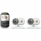 Motorola MBP25-2 Wireless 2.4 GHz Video Baby Monitor 2.4" Color LCD 2 Cameras Motorola MBP25-2 Wireless 2.4 GHz Video Baby Monitor with 2.4-Inch Color LCD Screen and Two Cameras 2.4 GHz FHSS wireless technology 2.4 inches color LCD parent monitor Includes 2 cameras with infrared night vision; monitor multiple rooms from a single parent unit High sensitivity microphone to alert you to noise in the room, plus two-way communication LED sound level indicator, low battery alert and out-of-range alert on parent unit 2.4 GHz FHSS wireless technology 2.4" color LCD parent monitor Includes 2 cameras with infrared night vision; monitor multiple rooms from a single parent unit High sensitivity microphone to alert you to noise in the room, plus two-way communication LED sound level indicator, low battery alert and out-of-range alert on parent unit Keep an eye on your little one with the latest technology! The Motorola 2.4" 2-Camera 2.4GHz Digital Video Baby Monitor makes it easy to watch the baby from anywhere in the house. 2 cameras provide extra angles and avoid blind spots where the baby can't be seen, and a high-sensitivity microphone ensures that you hear every noise your baby makes. Perfect for sleep training as well as peace of mind, this high-tech monitoring system will make life with your newborn all the more joyful! Motorola MBP25-2 Wireless 2.4 GHz Video Baby Monitor with Two Cameras The MBP25-2 is a wireless video baby monitor by Motorola that enables you to keep an eye on things in multiple rooms of your home. The convenient two-way communication feature allows you to communicate with your little ones without being in the same room. This video monitor also showcases a 2.4" full color LCD screen, zoom functionality, and infrared night vision for keeping an eye on things in very low light levels. With this sophisticated video camera combo, you're free to watch them dream. 2.4GHz FHSS Wireless Technology The MBP25-2's 2.4GHz FHSS technology offers a more reliable wireless connection compared to older wireless technologies. Upgraded wireless technology means much better range and less chance of missing something important happening in the home due to a weak or dropped signal. Color LCD Screen with Infrared Night Vision On the MBP25-2, a full-color 2.4" LCD display with LED sound level indicator shows real-time video and the level of sound activity in your baby's room so you can keep informed of what's going on visually as well as audibly. Infrared night vision means you can stay in touch with what's going in your baby's room without any lights to disturb little sleepers. Convenient Two-Way Communication Two-way communication allows you to speak or sing to your baby remotely, or to communicate with a partner in the room. "Out-of-Range" and "Low Battery" Alerts Stay connected to the action up to 520 feet away. An alarm sounds on the MBP25-2 when you're getting out of range of the transmitting unit, so you'll never have to wonder if you're close enough to hear what's going on. A low battery alert sounds when it's time to recharge the battery. What's in the Box One Monitor (Parent Unit) Two Cameras (Baby Units) One Battery Pack (for Parent Unit) One Power Adapter (for Parent Unit) Two Power Adapters (for Baby Units) User's Guide Quick Start Guide Fast and Free Shipping You're already purchasing the item. Why pay additional for shipping, especially slow shipping? We get your order shipped out within 1-business day and delivered to your doorstep as quickly as possible. Competitive Pricing With our dynamic pricing model, our prices are always competitive. Our prices are some of the lowest that you will find on the internet. Rest assured that you're getting a good deal when purchasing with us. 30-day Money Back Guarantee We are committed to making sure that you leave this transaction satisfied. If you're unhappy with the product for any reason, you may return it back for your money-back or a replacement within 30 days. No questions asked!