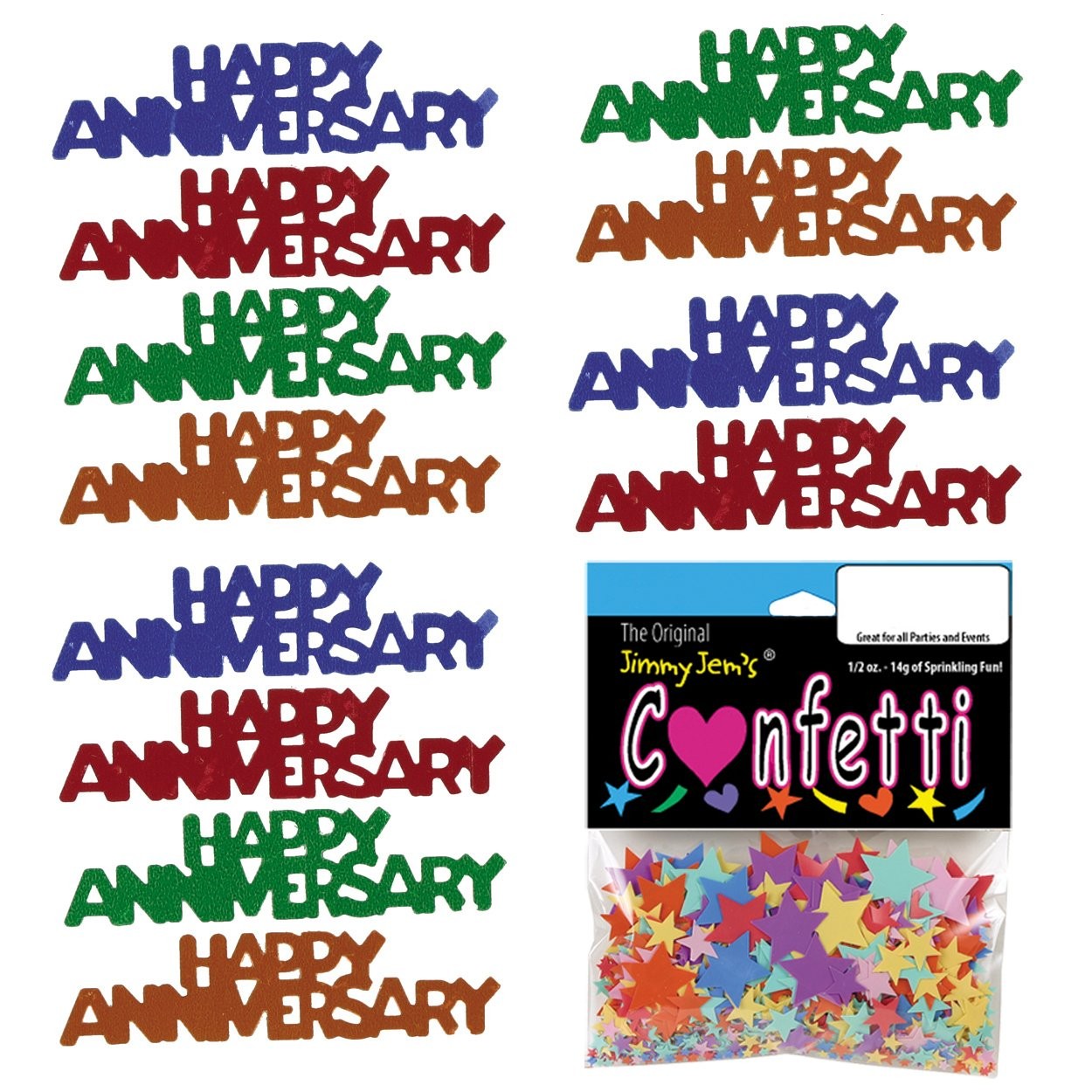eBay Product Listing Welcome to Your Favorite My Store Your satisfaction is our top priority – Shop confidently Confetti Word HAPPY ANNIVERSARY MultiColors - Retail Pack #7862 QS0 Item Gallery Item Description CLICK: "Visit the Jimmy Jems " link up top to visit our with over 500 Confetti Shapes, Colors & Mixes. For Custom Confetti - Search Category HANDMADE; then " Jimmy Jems Confetti " - Add any Name, Shape, or Word to your event ! GREAT FOR: Anniversaries! Great event for those who love FOOD AND DRINK! ENOUGH FOR: 1 to 2 Party Tables or 3 to 7 Invites. SHAPE SIZE: 2 1/8" x 1/2" (54mm x 13mm), WEIGHT: .5 oz. (14 grams) Special Features Click the "Visit the Jimmy Jems " link near the Product Title at the top of the page, to Visit Our that lists over 500 Shapes and Colors of Confetti. .. We are the inventor of Metallic Confetti over 35 years ago in small little in Culver City, in the heart of Los Angeles, and yes down the street from the palm trees of famed Beverly Hills. .. Do you believe a time when there was No Happy Birthday Confetti , or Christmas Trees for the holidays or spiders for Halloween, and Heart Confetti to sprinkle on that table for the one special dinner you gave your wife - way back when? Yes, those OLD days, that were really not all that long ago. .. Well, we stumbled upon this idea, about mid 1987, when we were at a paint on fairfax blvd. Looking for ideas to put on some greeting cards we were selling, and we saw some diamonds and square metallic shapes. .. We were, two students out of UC-LA. A brilliant artist, and a not so bright student, but world traveler, and with our futures in great doubt, and graduating 2 years prior we started our business. We first made artist things, then a cool greeting card line that was our first hit, when custom cards were the rage, which brought us to the paint and the idea, that this would be a very COOL IDEA for parties and nearly every event. .. From there, we contacted the only two glitter makers in the US, and asked for them to make shapes, and were told no. Like sorry, we are making too much money, in glitter. So. we search the tool and die guys in downtown LA, and found a machinist to take the project on, and soon after our Confetti was in every Party , Gift, Greeting Card, Groceries, and Department Stores in the . I mean 20,000 stores. Made in the .. YIkes, Confetti is now everywhere, because it is that small extra effort, to show someone that you care. That can show your emotion, or simply create a smile. Personally, at times, and even at events that celebrate our family and friends’ lives., .. So, be assured, we know about confetti, and give us a go. .. The Jimmy Jems Confetti Team Our Guarantee To You We offer fast shipping, free delivery, and 100% customer satisfaction guarantee. Not satisfied? Return your item for free within 30 days. 30-Day Free Returns Shipping Details Items will be sent to your eBay address. Please verify before purchasing. Typical delivery within 3-7 business days. Professional shipping services used for all orders. We ship to the continental US (48 states only). Unable to deliver to Alaska, Hawaii, or territories. No APO/FPO or PO Box deliveries available. We use eco-friendly packaging Payment Options We accept these secure payment methods: All transactions securely processed through eBay's payment system. Simple Returns 30-Day Satisfaction Promise Contact us through eBay messages within 30 days of delivery. We'll provide return instructions and our address. Return the item in its original condition. We'll process your refund within 48 hours of receiving the item. Get In Touch Have questions about your order? Contact us through eBay messaging for prompt assistance. We typically respond within 24 hours.