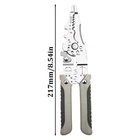 Product Features: 1. Multifunctional use: wire stripping, hexagonal screw unscrewing, metal buckle, wire winding, wire crimping, clamping, wire cutting, shearing, nail breaking, wire splitting, etc. 2. High-quality materials: Made of high-quality immortal steel, overall heat treatment, high hardness, cutting edge, strong shearing force, sturdy and durable. 3. Quick disassembly: Multi-specification nail breaking holes can quickly remove iron nails, and the pliers opening can also be used as a wrench for removing 8/10 size screws. 4. Comfortable non-slip handle: The ergonomic rubber-coated handle and non-slip design ensure that you can hold it easily. The handle is comfortable to hold and you won't feel tired holding it for a long time. 5. Widely used: These professional wire stripping pliers tools can meet different needs of daily life or work. Such as home decoration, worker construction, motor repair, repair wiring problems, DIY crafts, etc. Product parameters: Name: Multi-purpose wire stripper Material: 420J2 stainless steel Size: 21.7*5*2cm Weight: 170g Package includes: Wire stripper*1 Notes: 1. Due to various factors such as display brightness and light brightness, the actual color of the product may be slightly different from the picture shown on the website. 2. Manual measurement data may have slight deviations.