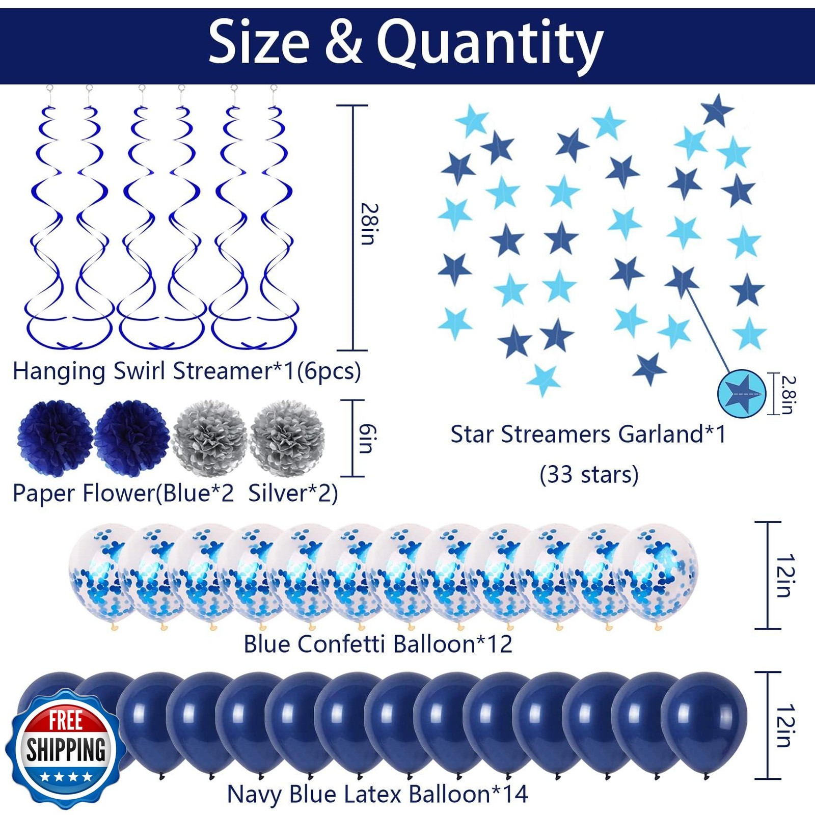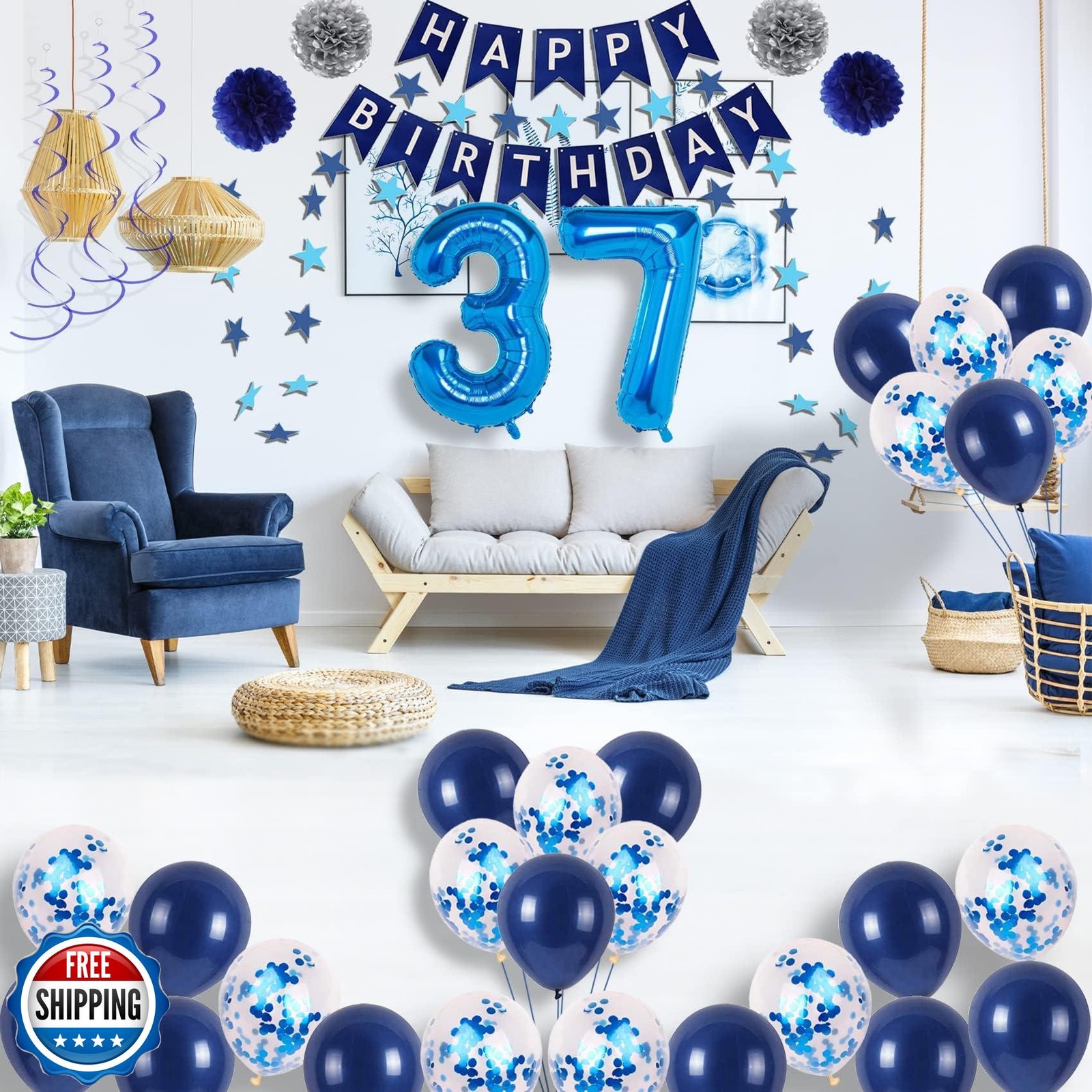 NANINUNENO 37th Blue Birthday Party Decorations for Men Women, Happy 37 Birthday Balloons Supplies with Happy Birthday Banner, 37 Number Balloons, Blue Star Streamers, Hanging Swirls Features ►WHAT THIS KIT INCLUDES: This sweet 37th happy birthday party décor package includes ‘HAPPY BIRTHDAY’ banner*1 set, royal blue number 37 foil balloons*2, star streamers garland*1, blue hanging swirls*1 set, paper flowers (silver*2, blue*2), navy blue latex balloons *14, confetti balloons*12, which will meet all your needs No compromise on quality: We promise our balloons use pure natural latex, which are safe, non-toxic, besides, thicker material ensures that balloons are elastic and not easy to explode ►CRAFTED FOR BLUE BIRTHDAY PARTY: Ultimate blue theme 37th birthday decorations are crafted for boys girls men women him her friends family; number 37 blue foil balloons are perfect for your 37-year-old birthday; you can decorate your party with these ornaments indoor or outdoor, add a warm and elegant atmosphere ►WARM TIPS: The shiny star garland streamers consist of 33 blue or light blue stars, approximate 13 feet long, you can cut to 2-4 parts according to your needs; the twinkling hanging swirls set includes 6 double helix streamers, each about 28 inches; glitter effect confetti balloons need to be rubbed with your hair after inflated, all of which are easy to assemble Worry free exchange: As soon as your products arrive, check the items and let us know if there is anything missing so we can replace one immediately Shipping Free & Fast Shipping: We offer free shipping to most of the USA with a normal delivery time of 3-7 days. However, due to the current situation, additional delivery time (up to 3 weeks) may be required for some items. Alternative Carriers: We may use alternative carriers (e.g., USPS, FedEx, UPS) to ensure your package arrives safely and on time. Due to the use of multiple carriers, we are unable to provide a tracking number automatically. Handling Time: Orders are processed and shipped within 1-2 business days of receiving cleared payment. Shipping Restrictions: Shipping to Alaska, Hawaii, Puerto Rico, Guam, and other US territories may incur shipping charges or delivery restrictions. Please contact us before ordering, or your order can be refunded/cancelled. State Restrictions: Certain items may not be shipped to California due to state regulations. Contact for Tracking Updates: If you require tracking updates or have any concerns about the delivery of your order, please feel free to contact us, and we will be happy to assist you. Return Policy 30-Day Hassle-Free Returns: If you are not completely satisfied with your purchase, you can return the item for free within 30 days of receiving it for a full refund or exchange. Easy Return Process: Contact us, and we will provide you with a prepaid return shipping label and detailed instructions. No Restocking Fee: There are no restocking fees for returns. However, the buyer is responsible for return shipping costs if the return is not due to a seller"s error. Refund Processing: Refunds will be processed within 1 business day of receiving the returned item in its original condition. Feedback Your feedback is extremely important to us. We strive to provide the best products and customer service possible. If you are satisfied with your purchase, please take a moment to leave us a positive review. If you have any concerns or issues with your order, please contact us before leaving negative feedback. We are committed to resolving any problems and ensuring your satisfaction. Contact Us If you have any questions or concerns, please feel free to reach out to our customer support team. You can contact us through the eBay messaging system. We are available Monday to Friday, 9:00 am to 5:00 pm EST, and we will do our best to respond to your inquiry within 24 hours. Thank you for supporting our small family business!