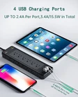The NANOLAKE monster type surge protector power strip. A powerful solution for all your charging needs. Equipped with 22 charging ports including 18 grounded AC outlets and 4 smart USB ports, it can charge up to 22 devices simultaneously. With a durable 10ft long 16AWG extension cord, This makes it suitable for a wide range of applications, including string lights, block heaters, household and office appliances, and any other devices that require extended use. The flat plug outlet extension cord features 3 sides with 18 widely spaced multi-plugs, along with 4 high-speed USB smart charging ports (5V/3.4A Total, 5V/2.4A Max). This design allows for the simultaneous use of slightly larger power adapters and provides ample outlets for various needs. With a 10ft heavy-duty long extension cord and a right-angled flat plug, this product offers sufficient length for multiple plug uses. It also features a compact and mountable design, making it a convenient and organized charging station for your home office workstation. Furthermore, the extension cord surge protector is designed to safeguard your devices and appliances. It has a 4800-Joule energy rating, providing reliable protection against potential voltage spikes that could otherwise damage your valuable electrical appliances, such as TVs, computers, and home entertainment systems. Notifications: 1、LED grounded indicator light in red shows it's reliability to use. 2、LED protected indicator light in green shows it's under surge protection 3、Socket Switch to RESET to function up our extension cord with surge protector 4、For More powerstrips notifications and instructions, please refer to the manual. Specification: Model:EL-18A Power Rating: 1875W(125V)-3750W(250V)(15A MAX) AC Input: 110-240V 50/60Hz USB Output: 4*USB, 5V/Max 2.4A per port USB Power: 17W(Total 5V/3.4A output) Joule Rating: 4800J Cord Guage& Length: 16AWG, 10FT 1:22-in-1 surge protector power strip: 3 sided non-blocking design with multiple plug outlets, including 18 grounded AC outlets and 4 USB ports (17W) or new version for trail 30W 2 USB A and 2USB C (PD 20W fast charger). which intelligently detect and charge connected devices. The maximum power capacity is 1875W (15A). Our flexible power strip is designed for convenience and space-saving. 2.2800/4800 joules heavy duty surge protector power strip:Durable and reliable power strip,Offers surge protection up to 4800 joules,to protect expensive electronic equipment from power surges. 3. Long Extension Cord: Equipped with a 10 feet long heavy-duty cord, this power strip provides ample length for your various electronic needs. 4:Mountable and flat plug : The multiple plug outlet features two keyhole slots on the back and two hanging holes on the top, making it easy to mount this flat extension cord onto the wall or furniture. The 45° angled flat plugs are perfectly suited for narrow spaces, such as behind a bookshelf, nightstand, or TV. This extension cord provides multiple outlets for your convenience. 5:8-point safety protectors system: Combines a surge protector with eight safety features to ensure the protection of you and your devices. includes fire resistance, overload / grounded / over current / over voltage / short-circuit / over-heating protection, and offers a high energy absorbing capacity of 2800/4800 Joules. The system is composed of a 3-level complementary Integrated circuit consisting of TVS (transient voltage suppressor), MOV (metal oxide varistor), and GDT (gas discharge tube).