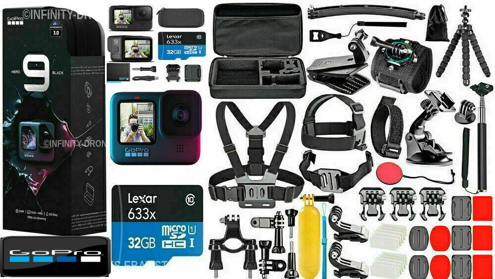 All New Gopro Hero 9 Black + ***Deluxe Accessories Mega Bundle*** Package Contents GoPro HERO9 Black Battery Curved Adhesive Mount Mounting Buckle + Thumbscrew USB Type-C Cable Carry Case Lexar 32gb High Speed Card Limited 1-Year Warranty Accessories Package Included below 1 x Suction cup 1 x Yellow Floating Handle Grip 1 x Strap 1 x 360-degree Rotation Clip 1 x Insurance Tether Straps 1 x Wrist Strap 1 x Handheld Monopod 1 x Bicycle Handlebar 1 x Chest Strap 1 x Headstrap Mount 1 x Wrench 1 x Wrist Mount with Screw 1 x Tripod Mount Adapter 1 x Carrying Case 1 x Helmet Extension Arm 1 x Helmet Strap Mount 1 x Mini Tripod 2 x Switch Support 2 x Surface J-Hook Buckle 3 x Basic Mount 3 x Flat Mounts 2 x Curved Mounts 4 x Screws 5 x Adhesive Pads 12 x Anti-fog Inserts 2 Days Shipping : All Orders Placed Before 12 Eastern Time Will Ship Same Day All Orders Past 12 Eastern Time Will Ship Next Business Day