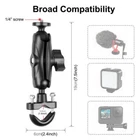 Features: 【Wide Compatibility】 1/4 inch screw connection design, and comes with a sports camera mounting adapter, the handlebar mount is compatible with most sports cameras, phone holders, mini LED light, microphone, etc. 【Easy to Install】 Can be attached to any round rods with diameter no more than 3.6cm/ 1.4in, and the included mini wrench can make the installation easier for you. Suitable for most bicycle/ motorbike handlebar. 【Double Flexible Ball Head】 Double ball head design, both supports 360° rotation, flexible to adjust usage angle. With a side knob to lock the ball heads firmly, stable and reliable. 【High-quality Material】 Made of high-quality ABS material, lightweight and durable, strong enough to hold your action camera firmly during cycling. 【Wide Applications】 Suitable for recording video in cycling or motorcycling. Enjoy the fun of cycling and recording the beautiful scenery at the same time. Specifications: Color: Black Material: ABS + Metal Compatible Rod Diameter: Max. 3.6cm/1.4in Item Size: 19 * 6cm/ 7.5 * 2.4in Item Weight: 290g/ 10.2oz Packing List: 1 * Handlebar Mount 1 * Sports Camera Mount Adapter 1 * Long Screw