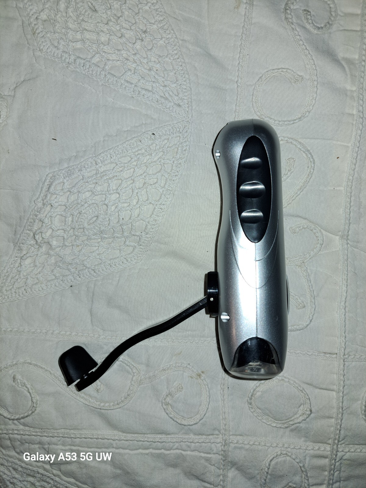 This hand crank generator flashlight is a must-have for any camping or hiking trip. With no need for batteries, you can rely on the Garrity Lite Super Bright 3 LED flash light to provide a strong and durable source of light. The flashlight features kinetic charging, which means it can be recharged by simply using the hand crank. Measuring 6 inches in length, 6 inches in height, and 1.5 inches in width, this flashlight is compact and easy to carry. It has a range of 10 meters and is equipped with 3 LED bulbs, providing bright and efficient lighting. The Garrity flashlight is made of strong and durable plastic material and has a sleek silver color. This handheld flashlight is perfect for any outdoor adventure.