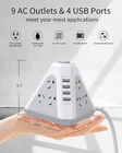 NVEESHOX Power Strip Tower Surge Protector-9 Multiple White Gray+6.5 FT Product Details Product Dimensions: 5.9 x 5.9 x 5.1 inches Item Weight: 1.23 pounds Item model number: TP-VH4U9S Manufacturer: NVEESHOX Brand: NVEESHOX Color: White Gray+6.5 FT Total Power Outlets: 13 Voltage: 125 Volts Special Feature: On And Off Switch, Surge Protection, Usb Slot 【9 Outlets 4 USB Ports Power Strip with Triangle Stable Shape 】The 3-side power strip tower with 9 AC outlets and 4 USB charging ports,can power up to 13 devices simultaneously. The tower compact design saves more space, suitable for the home, office, and college dorm room.Triangle shape also more stable,will not fall easy. 【USB Power Strip with Master ON/OFF switch】Surge protector power strip with 4 USB charging ports provides 3.1A in total.Each USB A port features 5V/2.4A Max output. Built-in smart charging technology that detects and delivers an ideal input current of each up to 5V/2.4A. Would charge your cellphone, laptop, tablet, and cameras, etc. The master switch on the top of the power strips is easier for you to manage all connected devices, no more plugging & unplugging hassle! 【Charging Tower with Multiple Protection】The usb power strip surge protector with multiple protection is made from ABS + PC fire-resistant material and advanced multifunctional protection technology, This power strip has overload protection, short-circuit protection, over current protection, over-voltage protection and overheating protection. It will automatically cut power to protect connected devices when voltage surge is overwhelming. 【45° Right-Angled Flat Plug &6.5 Long Extension Cord】This power tower surge protector has 45° right-angled flat plug will not block the bottom receptacle of your duplex wall outlet. The 6.5ft cord is made of 100% pure copper, the conductivity and heat dissipation is better, It has Reusable Fastening Cable Ties Can tie up the unused cord and make it better organized