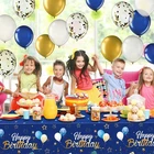 Features: Lasting thick: Latex balloons support air and helium, and when filled with helium, they can fly very high. All balloons are safe for children and can be reused many times. Save your time. Custom designs: A lot of love and attention has been put into the design of our Blue Gold Birthday Decorations so you can celebrate your big birthday! These elegant navy blue parties are suitable for all ages, whether it is boys, girls, men or women. I'm sure they will make a special birthday party memory for you. Specifications: Material: Happy birthday backdrop: polyester fabric Balloons : natural latex Color: as pictures shown Package includes: 1 x Navy blue backdrop (73 x 43 inches) 50 x Navy blue balloons 2 x Navy blue tablecloths 1 x Roll of balloon glue 1 x Roll of balloon chain 1 x Roll of backdrop ribbon 1 x Knotters Note: The balloons are made of flammable latex, please keep them away from the hot source. Winding risk may exist, please keep them away from boys and girls who are under the age of 3. Please allow slight color difference due to different screen displays. Please allow 1-2 cm error due to manual measurement. Please do not over inflate the balloon to avoid the risk of explosion, and keep away from heat, or anything pointed. Package Includes: you will get 1 Happy Birthday background banner, 50 confetti balloons, 2 navy blue confetti stars tablecloths, 1 balloon glue, 1 balloon chain, 1 background cloth ribbon. They will be the ideal addition to your birthday party, decorating with these colorful balloons and banners will give you a strong birthday feeling Navy Blue Birthday Decorations: do you want extravagant party favors? No one will not love our navy blue birthday party decorations. Birthday gift for girls, ladies, boys, men. Not only suitable for birthday party decorations, but also for anniversaries and more Reliable and Most Characteristic: our blue birthday decorations are certified and fully tested. Our balloons are made of quality rubber, the background cloth is made of thick polyester cloth, and the tablecloth is made of quality plastic, which is easy to use, safe. If there is a small amount of dust on the balloon, it is to avoid the balloon from sticking and deforming, which is safe. This blue and gold birthday decoration can help brighten up your beautiful birthday party DIY Your Birthday Party: our tying tool makes it easy to tie your balloons. You can do it with your family and friends, easily build a stunning navy blue balloons garland arch decoration as requested, and enjoy this happy family DIY craft time Wide Applications: these navy blue birthday balloon decorations are designed to create the ideal birthday party for you. Background banner can be hung on walls, doors and applied as party supplies, indoors or out, ideal for party photography backdrops, you can also take pictures with your guests in front of the backdrop, which will add more flair to the party Meaning and fun, birthday memories for your friends and family