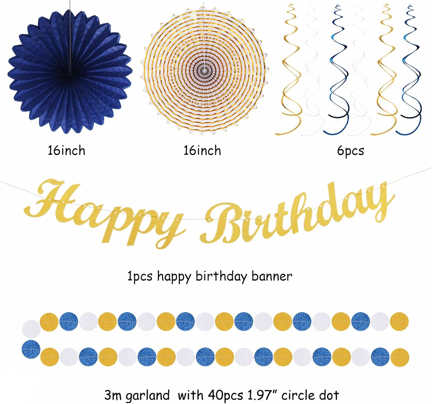Store New Arrivals Add to Favorite View Feedback Contact Fast deliveries to the customer's home Quality customer service John Make the customers happy! Navy-Blue White Gold Birthday Party-Decorations - 21Pcs Men Boys Adult Happy Banner Garland, Royal Paper Streamers Lanterns,Flower Tissue Pom Poms Fan Supplies, Wall Backdrop Decor Description 【Navy Blue White Gold Party Decorations Kits】This kits include 1pcs happy birthday banner, 1pcs circle dots paper banner, 4pcs tissue flower pom poms: 3pcs 10" and 1pcs 12" , 3pcs 8inch paper honeycom ball, 2pcs 8inch paper lantern, 4pcs 12inch paper fan, 6pcs Paper swirls hanging streamers. 【Unique Birthday Party Decoration design】Classy funny color, use our high-quality birthday decorations at your party table and give your guests the details they deserve. It will be a great addition to your bride to be theme party favors. 【Wide Application】This naughty party decorations kit have been used for all kinds of parties and special occasions. Perfect for 16th 20th 21st 25th 29th 30th 40th 50th 60th 80th birthday party decoration and Supplies. 【Easy to Assemble】The paper fan and paper lanterns are easy assemble, the birthday banners can be diy, the circle dots paper banner has been assembled but tissue paper pompoms take more time to put together, please diy with the instructions. It will take about 20 minutes in total. 【Quality Guarantee】If you are not satisfied with the color, quality or other aspects,please contact us for a refund or replacement. We have a 30 day refund guarantee for every order. 【Navy Blue White Gold Party Decorations Kits】This kits include 1pcs happy birthday banner, 1pcs circle dots paper banner, 4pcs tissue flower pom poms: 3pcs 10" and 1pcs 12" , 3pcs 8inch paper honeycom ball, 2pcs 8inch paper lantern, 4pcs 12inch paper fan, 6pcs Paper swirls hanging streamers. 【Unique Birthday Party Decoration design】Classy funny color, use our high-quality birthday decorations at your party table and give your guests the details they deserve. It will be a great addition to your bride to be theme party favors. 【Wide Application】This naughty party decorations kit have been used for all kinds of parties and special occasions. Perfect for 16th 20th 21st 25th 29th 30th 40th 50th 60th 80th birthday party decoration and Supplies. 【Easy to Assemble】The paper fan and paper lanterns are easy assemble, the birthday banners can be diy, the circle dots paper banner has been assembled but tissue paper pompoms take more time to put together, please diy with the instructions. It will take about 20 minutes in total. 【Quality Guarantee】If you are not satisfied with the color, quality or other aspects,please contact us for a refund or replacement. We have a 30 day refund guarantee for every order. Item model number Huy-HB-029 Batteries required No Material Paper Item Weight 11.7 ounces Color Navy-blue White Gold Theme Occasion Included Components No additional components included ABOUT US We offer the best prices around on high quality products. Our E-store includes media such as books, movies, music and games while offering electronics, toys, sporting apparel, clothing, tools, general home, garden items and more. SHIPPING We are always working hard to ensure your package arrives as soon as possible. Please understand that some factors like weather, high postal traffic, and the performance of shipping companies are outside of our control. We offer free shipping to the lower 48 states and ship within 2 business days of payment, usually sooner. We do not accept P.O. Boxes. Please provide a physical address. For shipping outside of the continental USA, we only use eBay's Global Shipping Program. The item is shipped to KY and then sent to the rest of the world. International customers are responsible for all duties and taxes. Continue to 'check out' to calculate costs for shipping the item to your country. Messages regarding eBay's Global Shipping Program MUST be directed at eBay EXCLUSIVELY. RETURNS We offer a 30-Day Return Policy on items in which you are not completely satisfied with. You have the option of a full-refund or an exchange of the item. No returns are available on items shipped outside of the USA PAYMENT We accept PayPal. CONTACT US This page content is yet to come Please ad us to your favorite seller and visit again later Thank You CUSTOMER SATISFACTION We try our very best to make sure every customer is completely satisfied. If there's a problem, message us! We're happy to help. WE ACCEPT