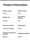 Genuine Hyundai product in original factory packaging. Includes box, cable, case, and manual, and earbuds. USA seller. Fast free shipping! Product Code: HY-Y11 Wireless version: V5.4 Charge time 1.5 hr Play time 30hr+ Transmission distance: 10m Speaker Size: 12mm Charging port: Type-c Frequency Response: 2.402GHz-2.480GHZ Headphone capacity: 33 mAh Charging chamber capacity: 380 mAh Package: headphones, charging compartment, charging cable, manual