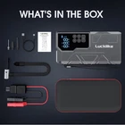 【New】 Lucklike Jump Starter with Air Compressor, 4000A Portable Car Battery Jumper Starter Pack for 10L Gas and 8L Diesel, Tire Inflator with Presssure Detection, 12V Jump Box with 3 Modes Flashlight Product Details Brand: Lucklike Product Dimensions: 1.97"D x 4.13"W x 8.15"H Item Weight: 1.8 Pounds Amperage: 4000 Amps Peak Output Current: 4000 Amps Manufacturer: Shenzhen Kalaifu Technology CO.,Ltd. Model: Jump Starter Item Weight: 1.78 pounds Item model number: W210 Batteries: 1 Lithium Ion batteries required. (included) Manufacturer Part Number: W210 Brand: Lucklike Product Dimensions: 1.97"D x 4.13"W x 8.15"H Item Weight: 1.8 Pounds Amperage: 4000 Amps Peak Output Current: 4000 Amps Battery Cell CompositionVoltage: Lithium Ion12 Volts Vehicle Service TypeBattery Capacity: Passenger Car, Bus, Van, Motorcycle, RV, Truck, Lawn MowerPassenger Car, Bus, Van, Motorcycle, RV, Truck, Lawn MowerPassenger Car, Bus, Van, Motorcycle, RV, Truck, Lawn Mower See more 21.8 Amp Hours 【Jump Starter with Air Compressor】 -- Powerful 4000A peak jump starter. Instantly start your car in seconds when the 12v vehicles battery is out of power (up to 10.0L gas and 8.0L diesel engines). It also support the tire inflations function 【150PSI Tire Inflator with Tire Presssure Detection】 -- This car battery jump starter built-in air pump supports 4 modes: cars, motorcycles, bicycle, balls etc and the 3 unit switching: BAR, KPA, PSI. It also support tire pressure detection function, connect the air pipe to thecorresponding interface of the machine,the display screen will display the current tire pressure data 【Portable Power Bank】 -- This jump box can be used as a mobile power bank, it offer one 18W(5V/2A 9V/2A) fast charging type-C input port and one 18W (5V/3A 9V/2A 12V/1.5A) USB output ports, you can quickly charge your devices such as smartphones, earphone, tablets, cameras, etc. Ideal for road travel or camping 【LED Emergency Light & LCD Display】 -- With LED lighting function, lighting, flash and SOS modes can be switched for the emergencies. LCD screen provides real-time data,make it clearer and easier to operate the product 【10 Safty Protections】 -- This Lucklike upgraded W210 jump starter with air compressor built-in 10 safety protection technologies (Short Circuit Protection, Overtemperature Protection, Overcurrent Protection, Overdischarge Protection, Overcharge Protection, Reverse Polarity Protection, Overvoltage Protection, Reverse Charger Protection, Al Software Protection, Low Power Protection), jumper cables is auto-detect connection with no sparks, 100% safe