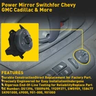 Fit for: 1999-2000 Cadillac Escalade 1996-2005 Chevrolet Astro 1995-1997 Chevrolet Blazer 1995-1999 Chevrolet C1500 Pickup 1995-1999 Chevrolet C1500 Suburban 1995-2000 Chevrolet C2500 Pickup 1995-1999 Chevrolet C2500 Suburban 1995-2000 Chevrolet C3500 Pickup 1995-1999 Chevrolet K1500 Pickup 1992-1999 Chevrolet K1500 Suburban 1995-2000 Chevrolet K2500 Pickup 1995-1999 Chevrolet K2500 Suburban 1990-2000 Chevrolet K3500 Pickup 1995 Chevrolet LLV 1995-1997 Chevrolet S10 Pickup 1999 Chevrolet Silverado 1500 New Power Switch Control Mirror Driver Side Chevy For Gmc Tahoe Astro C/K 901000 Fit for: 1999-2000 Cadillac Escalade 1996-2005 Chevrolet Astro 1995-1997 Chevrolet Blazer 1995-1999 Chevrolet C1500 Pickup 1995-1999 Chevrolet C1500 Suburban 1995-2000 Chevrolet C2500 Pickup 1995-1999 Chevrolet C2500 Suburban 1995-2000 Chevrolet C3500 Pickup 1995-1999 Chevrolet K1500 Pickup 1992-1999 Chevrolet K1500 Suburban 1995-2000 Chevrolet K2500 Pickup 1995-1999 Chevrolet K2500 Suburban 1990-2000 Chevrolet K3500 Pickup 1995 Chevrolet LLV 1995-1997 Chevrolet S10 Pickup 1999 Chevrolet Silverado 1500 1995-2000 Chevrolet Tahoe 1995-1999 GMC C1500 Pickup 1995-1999 GMC C1500 Suburban 1995-2000 GMC C2500 Pickup 1995-1999 GMC C2500 Suburban 1995-2000 GMC C3500 Pickup 1995-1997 GMC Jimmy 1995-1999 GMC K1500 Pickup 1995-1999 GMC K1500 Suburban 1995-2000 GMC K2500 Pickup 1995-1999 GMC K2500 Suburban 1995-2000 GMC K3500 1996-2005 GMC Safari 1995-1997 GMC Sonoma 1995-2000 GMC Yukon 1996-1997 Oldsmobile Bravada Specifications: OE Number: DS1396, 15009690, 19209371, SW5959, 1S8477, SK901000, 49000, 901-000, 901000 Pin quantity: 8PIN Placement on vehicle: front left Note: Please make sure your OE number is as same as ours before the purchase, otherwise it will not fit your car. Features: *Simple installation, direct replacement without any tools. *Stable performance with long service life. *Superior material with durable function. Packaging include: Power Mirror Switch*1 Item Specifics Brand Unbranded Placement on Vehicle Front Left Manufacturer Part Number AM-39747105 California Prop 65 Warning Attention California Customers: WARNING: Cancer and Reproductive Harm - Custom Bundle No Fitment Type Direct Replacement Interchange Part Number 1994 1995 1996 1997 1998 1999 2000 2001 2002 2003 2004 2005 Astro Blazer S10 C1500 Truck C2500 Truck C3500 Truck Hombre Jimmy S-15 K1500 Truck K2500 Truck K3500 Truck S-15 Sonoma S10 Pickup Safari Suburban C1500 Suburban C2500 Subu Superseded Part Number 1994 1995 1996 1997 1998 1999 2000 2001 2002 2003 2004 2005 Astro Blazer S10 C1500 Truck C2500 Truck C3500 Truck Hombre Jimmy S-15 K1500 Truck K2500 Truck K3500 Truck S-15 Sonoma S10 Pickup Safari Suburban C1500 Suburban C2500 Subur Type Door Mirror Switch Manufacturer Warranty 10 Year To Control Wing Mirror Features Durable OE/OEM Part Number DS1396 15009690 19209371 SW5959 1S8477 SK901000 49000 901-000 901000 Color Black Universal Fitment Yes FAQ ♥ If you have a decoding problem or any other problems, please contact us first, we will help you with it. We will reply you within 24 hours in working days. I'm a new seller, thanks a lot for your trust and convince! I will serve you with all my heart. ♥ Q1: Will this bulb fit my vehicle? A: We can match almost any vehicle to one of our bulb sizes. eBay only lets us include some vehicle fitments per listing, but if your vehicle does not show up on the compatibility table at the top of our listings, welcome you to contact us for free consulation before purchasing a product. Q2: My item has not arrived, what's taking so long? A: Sometimes items take longer than expected, especially if it’s going far or to rural area. Check with your post office to see if your item has been held up. Sometimes Royal Mail will not update a tracking number until it has arrived at its destination. If your item still don't arrive after a few days, let us know so we can double check for you and help solve it asap. Q3: My bulbs won't fit, help! A: Special bulb holder may be required. See if you can take the holder from the stock bulb. If not, let us know. The bulb size may be wrong, double check the item you received with the item you ordered. Do you have an aftermarket lighting housing? These may not be perfectly fitted for aftermarket bulbs and will require some manual modifications. Q4: Neither side lighting up? Both sides flicker, hyper flash, or work inconsistantly. A:Check the light fuses, and then check the ballast plugs to insure correct installation. If this doesn't work, there may be a voltage problem with the vehicle. You probably just need a relay or capacitor. Even though some bulbs are builtin resistors, they may still need a decoder. Pay & Ship (1). We gladly accepts payment via PayPal, We will ship your item(s) within 24 hours. (2). Before payment, please keep the consistency of Paypal address and ebay address. (3). Quantity orders are welcome! Returns (1). We offer 60 days free return policy. Please contact us within 60 days from the date you receive your order if you have any issues with the product or want return. Refund will be send after we got your resend package. (2). All returned items should be in the original packaging , return tracking information should be provided . Contact Us (1).Negative feedback will not help resolve any problems you have, please contact us via eBay messages before leaving negative feedback , our customer service will make best effort to help you with the issues. (2).We maintain high standards of excellenceand strive for 100% customer satisfaction! Feedback is very important to us. We request that you contact us immediately before you give us neutral or negative feedback, so that we can satisfactorily address your concerns. About us We're professional in car and motorcycle accessories, especially in LED bulbs. We have our own factory and R&D team. Our belief is to sell top quality items that fit your car and serve you with our heart. Anything please feel free to co
