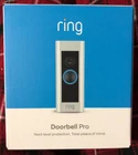ring Doorbell Pro New in Sealed Box Next Level Protection - Total Piece of Mind Color: Satin / Nickel Upgraded, 1080p HD wired video doorbell with Two-Way Talk and Quick Replies, Advanced Motion Detection, built-in Alexa Greetings (an exclusive Ring Protect Plan subscription feature), enhanced dual-band wifi, and customizable privacy settings Get motion-activated alerts on your phone, tablet or PC and check in at home anytime with Live View all in the Ring app Speak to visitors when you can’t get to the door with built-in Alexa Greetings, an exclusive Ring Protect Plan subscription feature Enjoy a more reliable connection with dual-band (2.4 or 5.0 GHz) wifi connectivity Hardwire Wired Doorbell Plus (Video Doorbell Pro) to your existing doorbell wiring and doorbell chime inside using the included tool kit for around-the-clock power and peace of mind With a Ring Protect Plan (subscription sold separately), record all your videos, review what you missed for up to 180 days, and share videos and photos. For added peace of mind, pair with Alexa to help you keep an eye on your home. Connect with Alexa to hear alerts on your compatible Echo device or see a Live View with an Echo Show, Fire TV, or Fire Tablet. Talk to visitors by saying, “Alexa, talk to the front door.” With a Ring Protect plan (subscription sold separately), Alexa can also make voice announcements and automatically show live video feed on an Echo Show, Fire TV, or Fire Tablet when your Ring Video Doorbell detects a person. Ring Wired Doorbell Plus (Video Doorbell Pro) Average Install Time ~15 minutes Video 1080 HD Live Video, Live View, Color Night Vision Field of View 160° horizontal, 90° vertical Motion Detection Advanced Motion Detection with Customizable Motion Zones Audio Two-way audio with noise cancellation Power Hardwired Requires a compatible doorbell, Ring plug-in adapter or transformer (not included): 16-24 VAC, 40VA max, 50/60Hz No halogen or garden-lighting transformers; Ring DC transformer/power supply only Internet Requirements High-speed internet Connectivity Connectivity 802.11 b/g/n Wi-Fi connection @2.4GHz and 5.0GHz Operating conditions -5°F to 120°F (-20.5°C to 48.5°C) Available Colors Satin Nickel Dimensions 4.50 in. x 1.85 in. x .80 in. (114.3mm x 46.7mm x 20.3mm) Box Includes Wired Doorbell Plus (Video Doorbell Pro) Satin Nickel faceplate Pro Power Kit Installation tools and screws Wedge and Corner kits User manual Security sticker Setup Requirements Standard doorbell system, Ring plug-in adapter or transformer with 16-24 VAC, 40VA max, 50/60Hz; Ring DC transformer/power supply only. Warranty 1-year limited warranty and service included . Generation Ring Wired Doorbell Plus (Video Doorbell Pro)