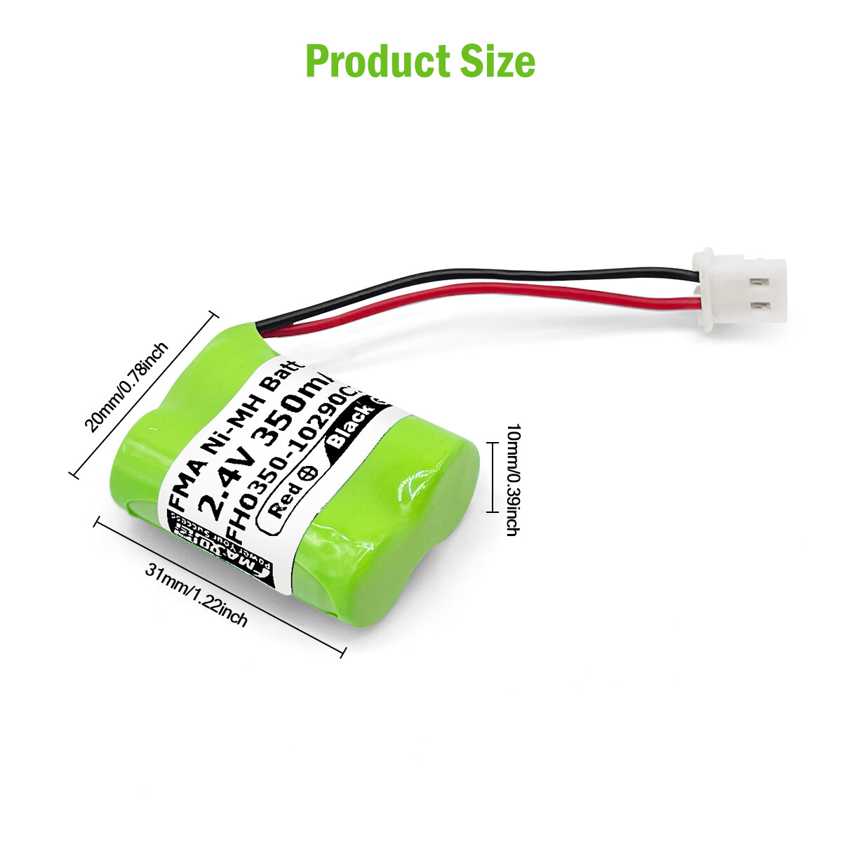 ????? Product Specifications Battery System: Nickel-Metal Hydride rechargeable battery Model No.: FH0350-10290P2SB Package list: 1*n Sets of battery pack; With EH 2P plug " n"means buying qty, i.e. the number filled in the blank of "Quantity" Condition: Brand New Brand: FMA Standard Capacity: 350mAh Standard Voltage: 2.4V Size 10*31*20mm Cell Package: PVC wraped Reference Weight: 15g Caution! We delivery the item same as the main pictures you saw in general. But if you need special connector and arrangement of battery, please refer to below pictures and tell us which one you need.
