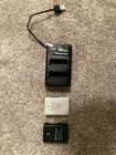 Nikon D3400 with 18-55mm Lens, missing lens cap, purple filter on end protecting lens, with two batteries and charger.