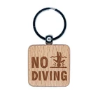 No Diving Swimming Head Injury Engraved Wood Square Keychain Tag Charm
