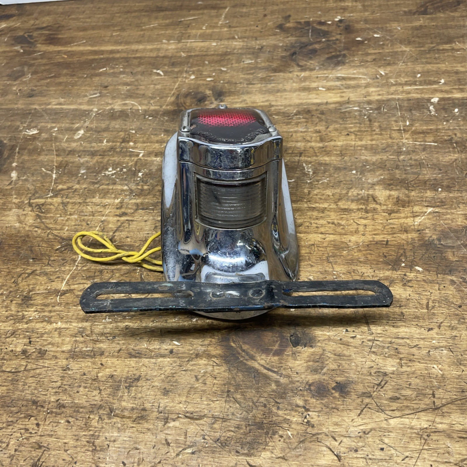 OEM Harley Guide Tombstone Taillight R-H5 1949-54 Panhead 45 Flathead Servicar This is a great old original taillight, with original glass lens! It does have a bend in the license plate bracket, as seen in the last couple pictures. Feel free to ask any questions!