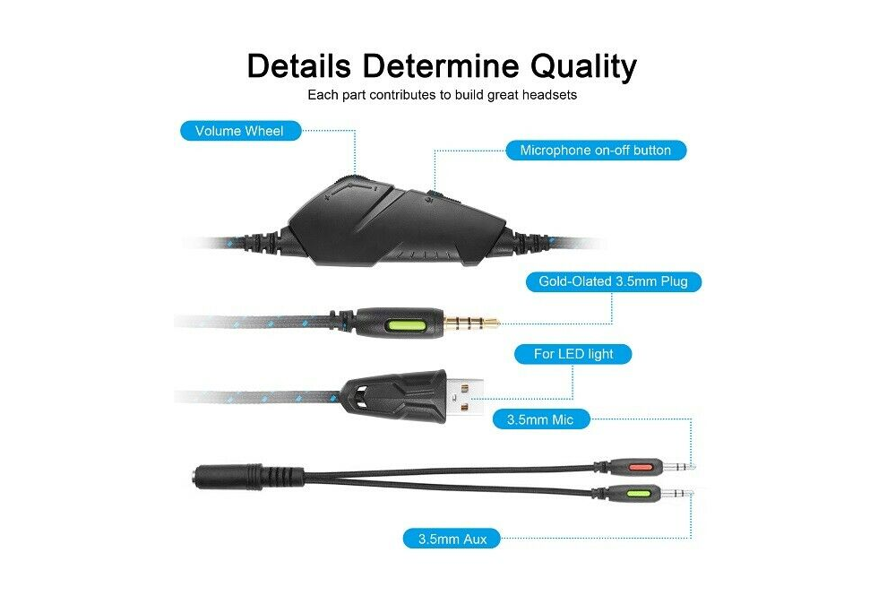 This gaming headset is a total game-changer! The sound quality is crisp and immersive, with deep bass and clear highs. The mic picks up voice perfectly without background noise, and the over-ear design is super comfy for long sessions. The 2.2m cable gives plenty of room to move, and the dual 3.5mm + USB connection ensures compatibility. Solid build, great value—highly recommend!