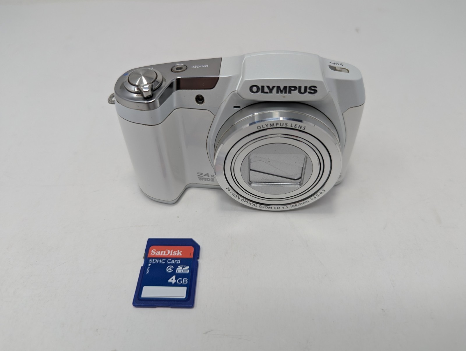 Model:Olympus Stylus SZ-16Optical Zoom:24xColor:Whitegtin13:n/aCountry/Region of Manufacture:JapanUPC:n/aDigital Zoom:4xBrand:OlympusItem Weight:8 Oz.Seller Notes:“Camera, 2 New Batteries with Charger, 4 GB SD Card, Tested, see all images”Type:CompactMPN:V102100SU-SKSeries:Olympus Stylus