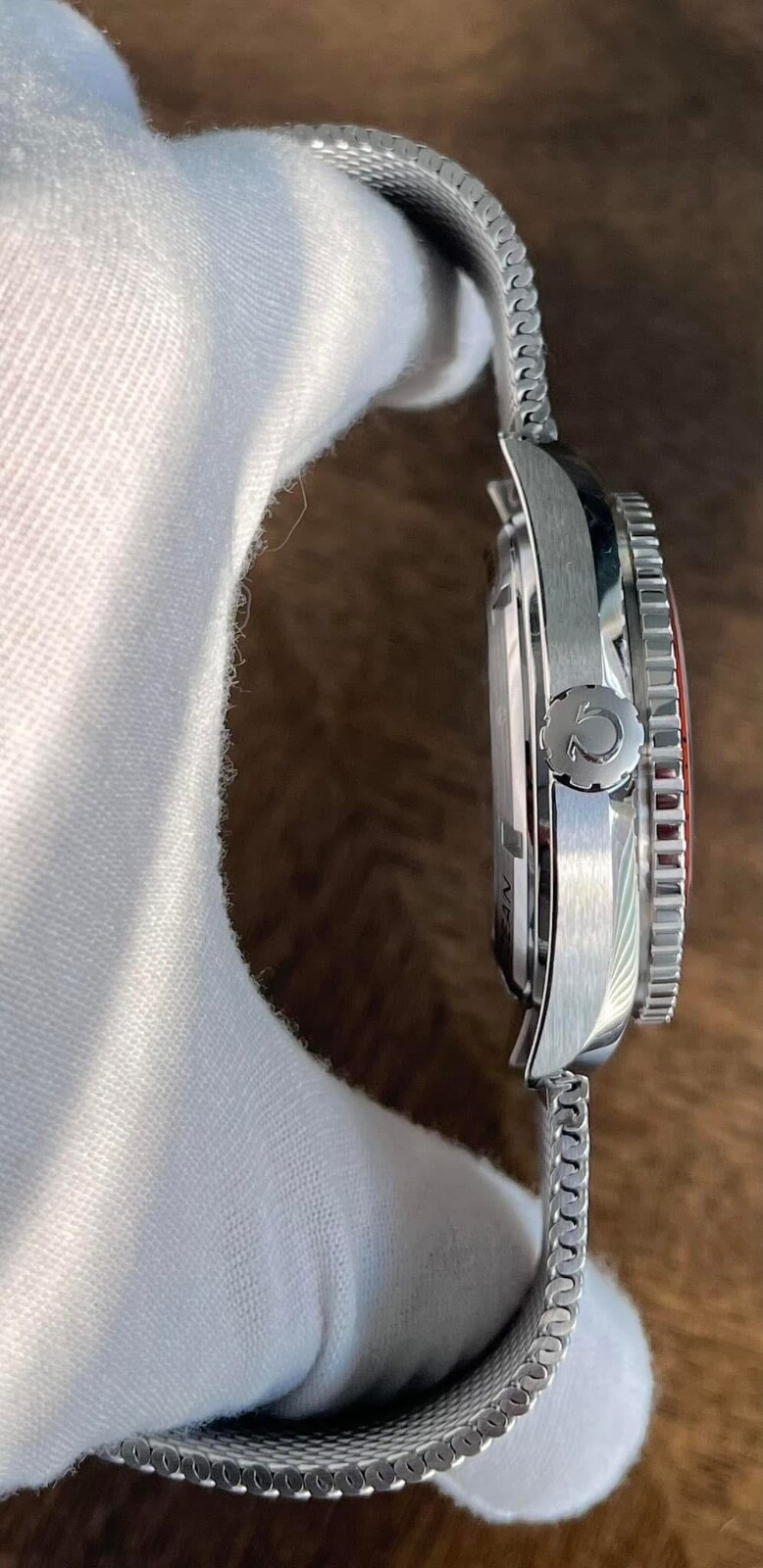 Model: Omega Seamaster Planet Ocean 45mm 232.32.46.21.01.003 Near mint and full set. Crystal and bezel are mint. Really clean piece overall. Gray bezel that came with the watch was swapped with OEM orange. This model originally came with black strap and deployant clasp which was swapped for new style OEM Omega milanese bracelet. Stock picture from Omega website attached for reference.