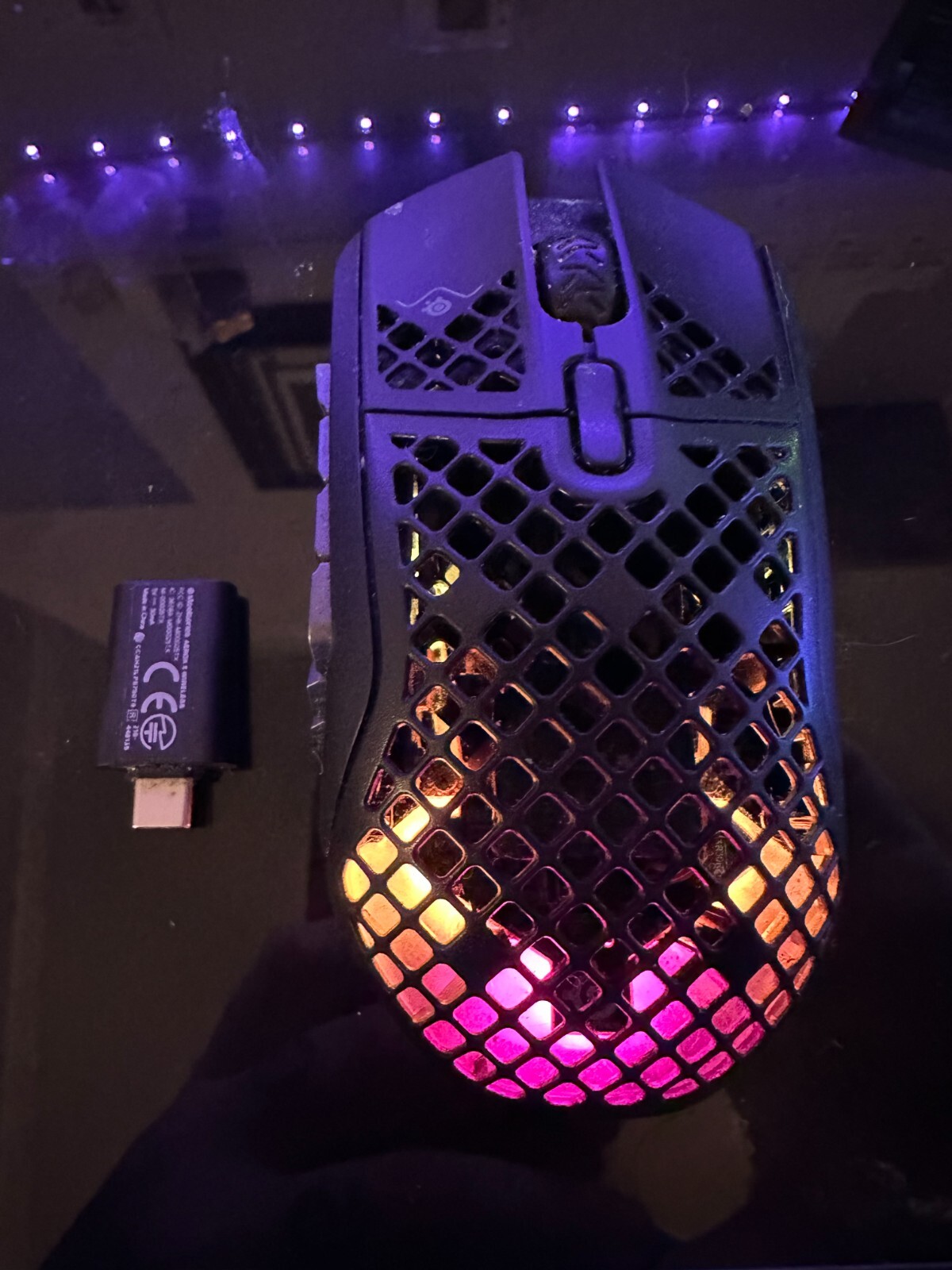 Elevate your gaming experience with the SteelSeries Aerox 9 Wireless Gaming Mouse, designed for the ultimate precision and comfort. This sleek black mouse boasts an impressive 18-button layout, with each button fully programmable to suit your specific gaming needs. The advanced optical tracking method ensures accurate movement on nearly any surface, while the high-precision sensor delivers up to 18000 DPI for crisp, responsive action. Connectivity is versatile, offering wireless, Bluetooth, and multiple RF options, including USB-C and Lightning, for seamless integration with your setup. The Aerox 9 also features a rechargeable battery, right-handed grip design, and a scroll wheel with a thumb button for efficient navigation. Turn on/off the mouse with a simple switch and enjoy the freedom of wireless play without the hassle of tangled wires.