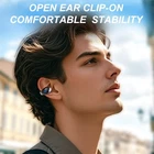 Open Ear Earbuds 【Lightweight clip on earbuds design】Crafted with highly elastic materials, each earbud weighs only 5.7g for feather-light comfort. The secure clip-on fit stays in place during intense workouts—no slipping, no ear canal pressure, and zero discomfort of in-ear headphones. Perfect for running, gym sessions, or all-day wear without fatigue. 【Premium Sound】Dual 13mm air-conducting drivers deliver crystal-clear sound for these Bluetooth Headphones. The tuned microphone picks up your voice precisely and reduces background noise, making music and calls effortless. 【Safe Open-Ear Design】These Open-Ear Headphones keep you aware of your environment while enjoying audio—safer than traditional in-ear/over-ear headphones. Perfect for outdoor activities where situational awareness matters. 【44H Playtime】Get 8 hours of use per charge with the Open-Ear Headphones, plus 36 hours from the charging case (total 44H). Compact case with dual digital display shows battery level, and supports Type-C charging. 【Skin-Friendly Silicone Open-Ear Headphones】These Bluetooth Headphones are made of skin-friendly silicone, no irritation even during long wear. Soft, breathable material ensures comfort for workouts, commutes, or all-day use.